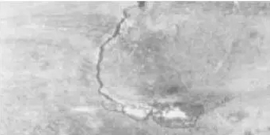 3.結(jié)疤。結(jié)疤是在軋材表面局部區(qū)域的一層可剝落的薄膜。結(jié)疤的形成是由于澆鑄時鋼液飛濺而凝結(jié)在鋼錠表面,軋制時被壓成薄膜,貼附在軋材的表面,即為結(jié)疤。鍛后鍛件經(jīng)酸洗清理,薄膜將會剝落而成為鍛件表面缺陷。